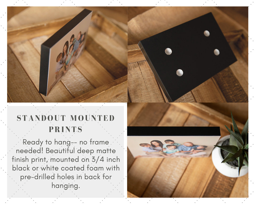 Since determining which sizes and types of photographic products to order can be a little overwhelming, part of the service I include with every portrait session is helping with the ordering process. We can discuss what you are wanting, and I can help direct you to the best products and sizes to meet your desires and budget.